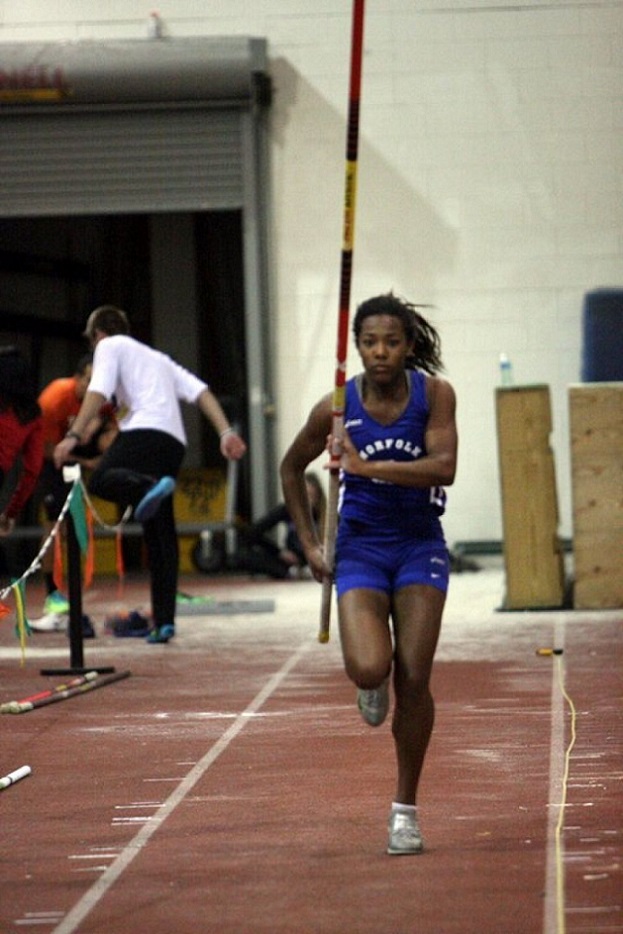 Norfolk Collegiate's Alexis Shelton will be in the running for the VISAA state title in the pole vault along with two others who have went over 10 feet this season in Sasha Osipenko of St. Catherine's and Tyler Bannister of Norfolk Academy. Shelton has a season best clearance in the event as well as Osipenko. (Photo by Mary Ann Magnant)